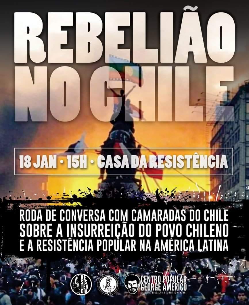 Nesse sábado, dia 18 de janeiro, às 15h na Casa da Resistência, recebemos camaradas do Chile para uma Roda de Conversa