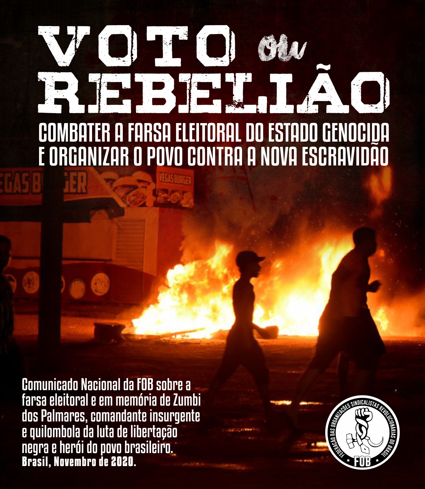 Comunicado Nacional da FOB sobre a farsa eleitoral e em memória de Zumbi dos Palmares, comandante insurgente e quilombola da luta de